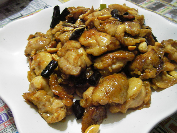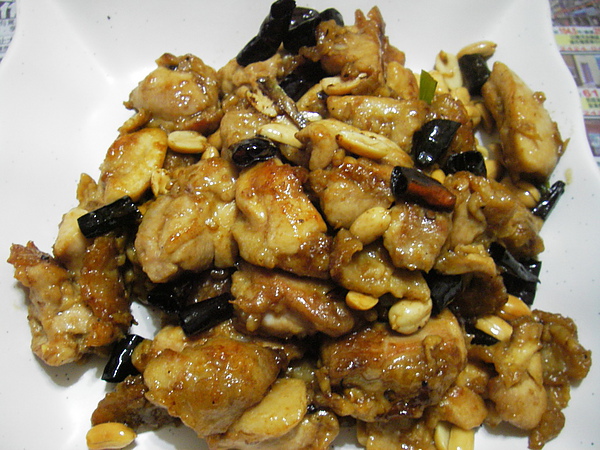雞腿肉(400g)、蔥一根、薑適量、蒜適量、花椒粒1大匙、乾辣椒1大匙、剝皮花生適量、米酒1大匙、黑醋1大匙