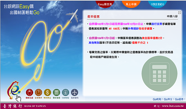 | 臨櫃兌換 | 線上申購 | 台銀easy購 | 外幣提款機 | |